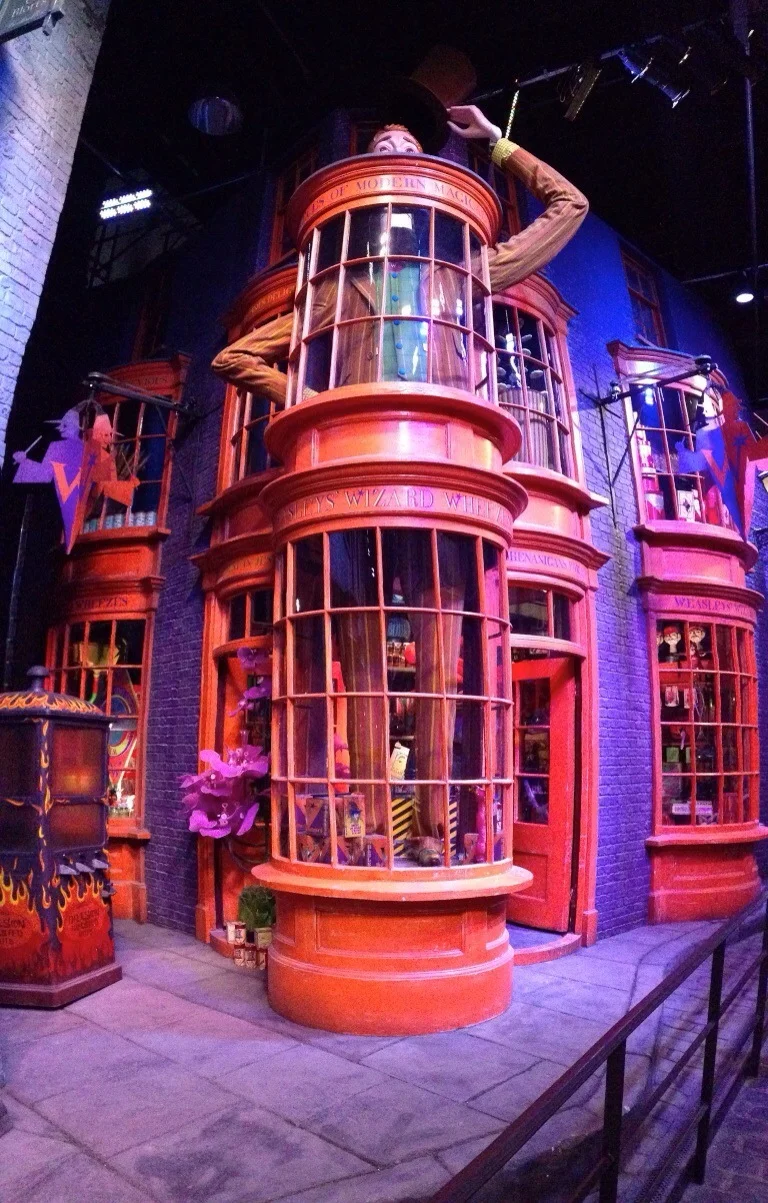 While we were there, we got to enter the Great Hall, see the costumes of each House as they matured, look into Gryffindor and Dumbledore’s office, and to see many other set props. Lovely! And Diagon Alley was lots of fun to look at. I really enjoyed the wand room - everyone who was a part of the experience was included, and the gentleman in the room knew precisely where each box was.